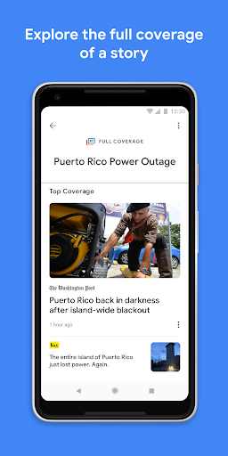 BAO GIỜ ĐẦY ĐỦ: Đi sâu hơn vào một câu chuyện với nhiều góc nhìn. Tính năng Toàn bộ Bảo hiểm sắp xếp mọi thứ trực tuyến về một câu chuyện, hiển thị và làm nổi bật phạm vi bảo hiểm từ các cửa hàng và phương tiện khác nhau. Chỉ với một cú chạm, bạn sẽ khám phá ra câu chuyện đang diễn ra như thế nào và cách mọi người báo cáo về câu chuyện đó.